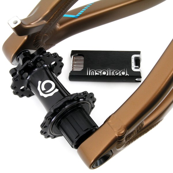 - Frame: Inspired Fourplay 24", 12mm bolt through axle, Satin Bronze (Gloss Chrome Blue Graphics)