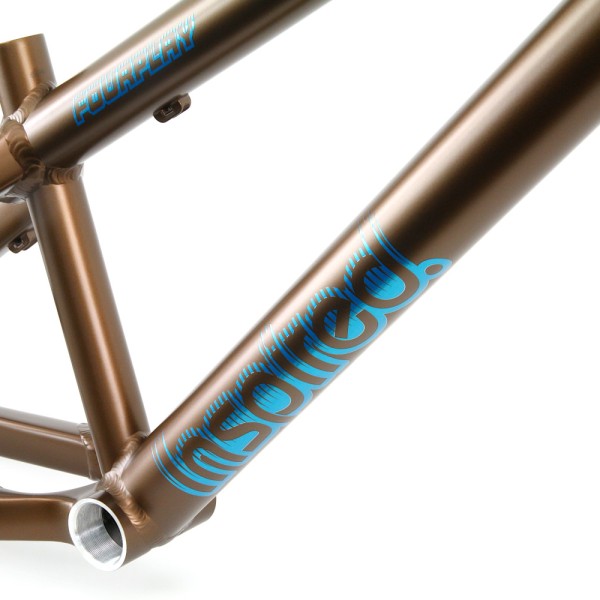 - Forks: Inspired Fourplay, Taper 1.5" steerer, 20mm bolt through axle, Satin Bronze (Gloss Chrome Blue Graphics)